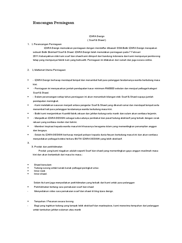 Rancangan Perniagaan Menjual Tudung Pdf